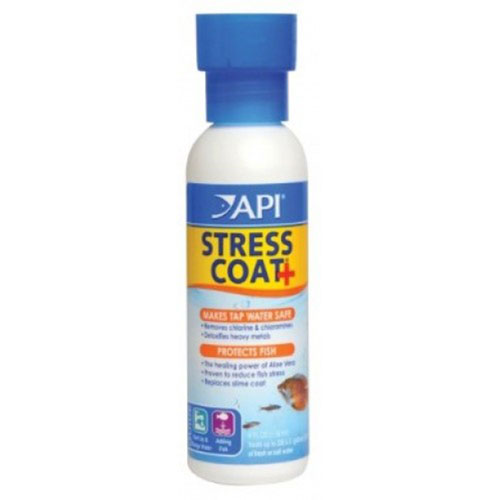 Provide immediate relief for your aquarium fish with API Stress Coat Aquarium Tap Water Conditioner in a convenient 118mL size. This effective formula neutralizes harmful chemicals in tap water, minimizing fish stress and promoting a healthy aquatic environment. Its compact packaging makes it perfect for smaller tanks or regular water changes, ensuring consistent water quality and fish well-being.