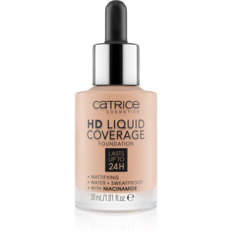 Catrice HD Liquid Coverage, 30 ml, Podkłady dla kobiet, Podstawą każdego makijażu, niezależnie od tego, czy jest to odważny makijaż wieczorowy, czy bardzo naturalny makijaż dzienny, jest nieskazitelna cera. I to właśnie pomoże Ci osiągnąć podkład Catrice HD Liquid Coverage . Idealnie wtopi się w skórę i zapewni perfekcyjne ujednolicenie jej tonacji kolorystycznej. Dzięki swojej sile krycia błyskawicznie zamaskuje drobne niedoskonałości, takie jak przebarwienia, zaczerwienienia czy ślady po trądziku. W mgnieniu oka uzyskasz jednolity kolorystycznie wygląd, który posłuży jako idealna baza pod dalszy makijaż. Właściwości: długotrwały efekt znakomite właściwości kryjące ujednolica koloryt skóry matuje cerę dostosowuje się do karnacji łatwa aplikacja Sposób użycia: Delikatnymi pociągnięciami nakładaj make-up na twarz. Palcami albo gąbeczką czy pędzlem równomiernie i dokładnie rozetrzyj.