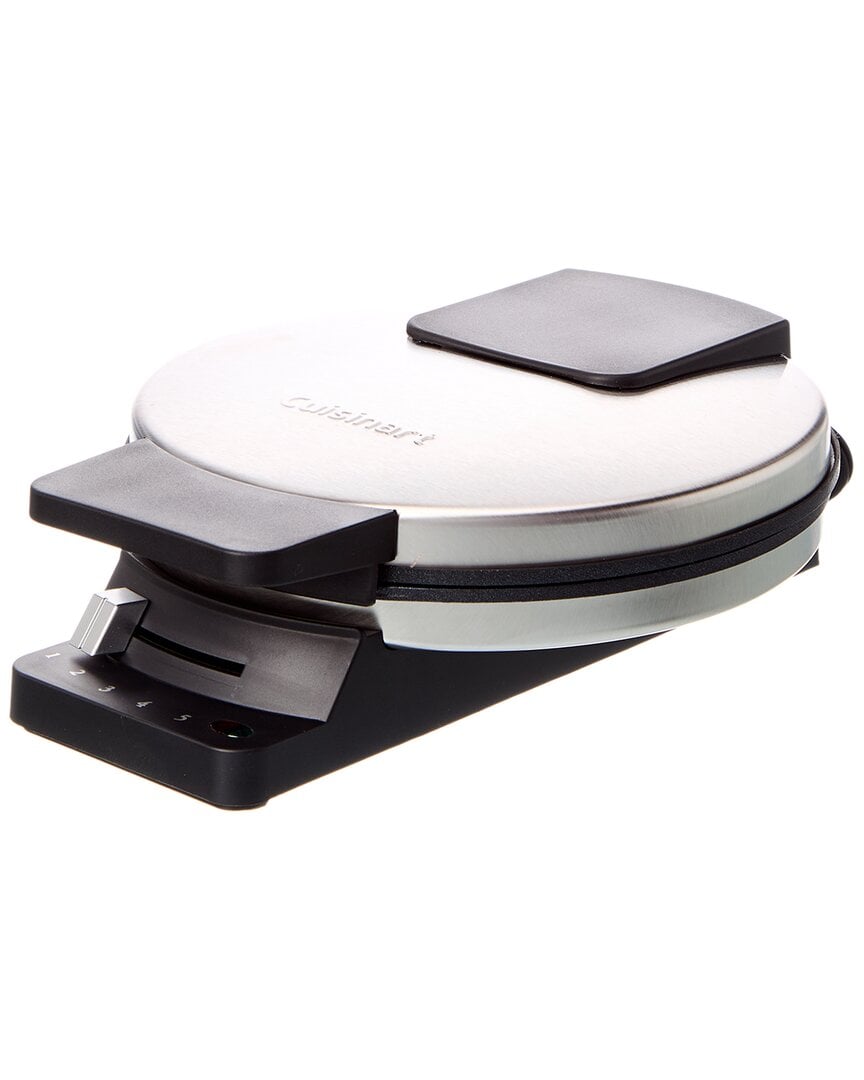 About the brand: For all your kitchen staples. Color/finish: silver Design details: Make delicious waffles fast and easy with the gleaming stainless steel Cuisinart Round Classic Waffle Maker. Take control of your breakfast with five browning settings and red and green indicator lights to let you know when its ready to bake, and ready to eat for wonderful waffles every time. Limited 3-year warranty Measures 9.45in x 7.87in x 3in Materials: stainless steel Food safe Wipe clean Imported