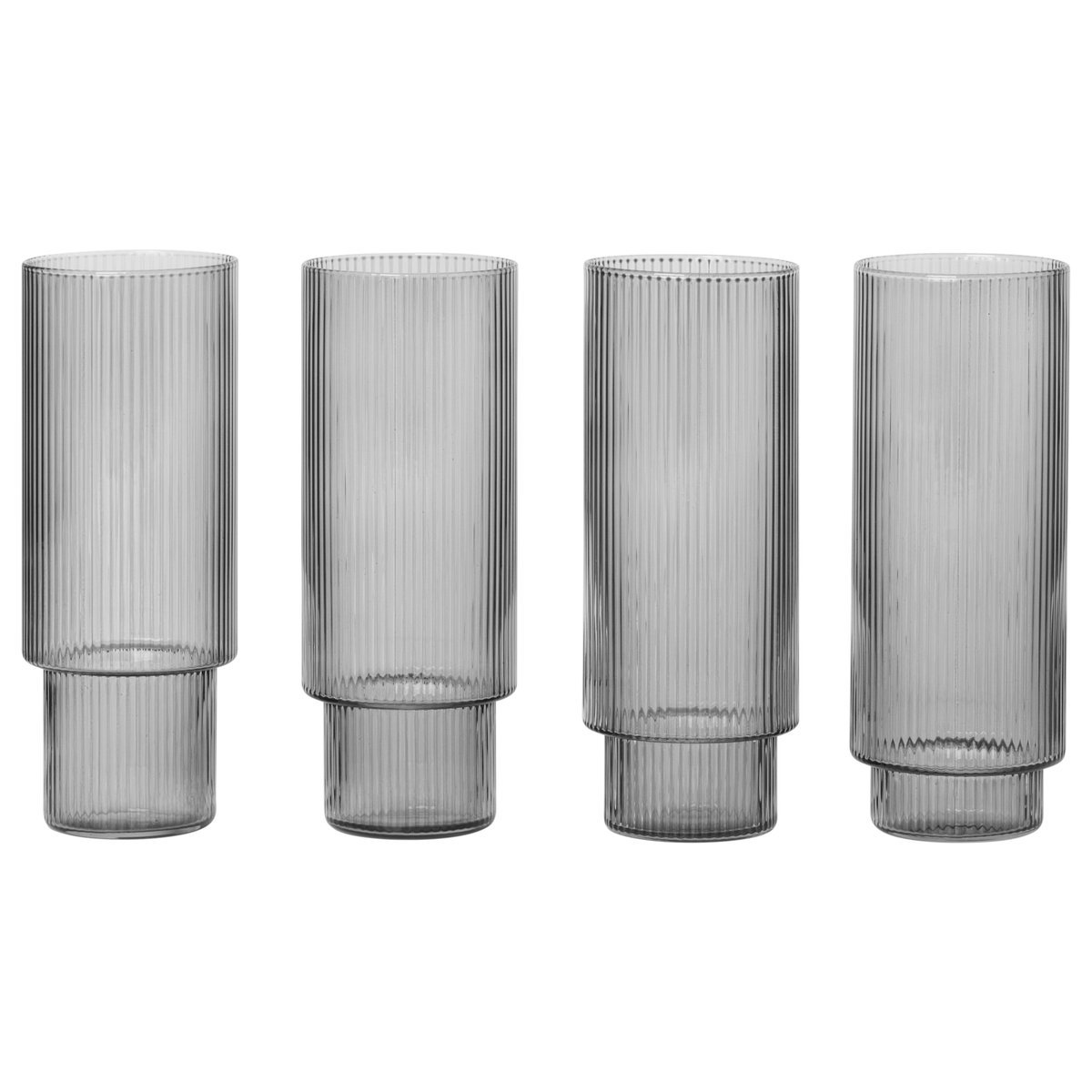 Ferm Living Ripple long drink glass 4-pakk Smoked grey