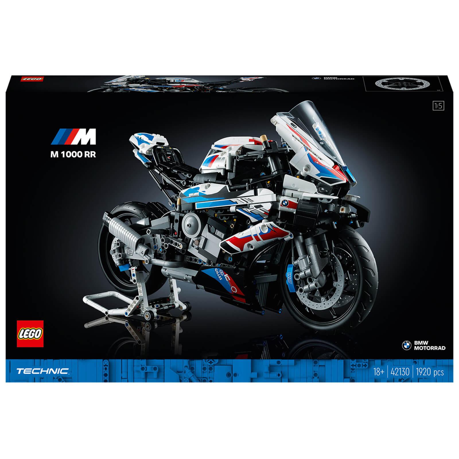 Developed in sports racing and perfected for the road, BMW motorbikes have captured motorsport fans' hearts. Now you can enjoy a mindful build crafting the LEGO 42130 Technic BMW M 1000 RR motorbike with this model kit for adults to build. Its 1:5 scale is a first for the LEGO Technic universe.This impressive motorbike model looks and moves just like the real thing with authentic features. Explore the functional 3-speed (+ neutral) gearbox, steering, front and rear suspension, chain transmission and inline 4-piston engine. With iconic BMW branding and 2 display stands, this motorbike model looks stylish on a show and makes a great motorbike gift idea for all who are into vehicle modelling.The LEGO Technic BMW M 1000 RR is part of a collection of LEGO sets for adults. Celebrating some of the world's best-loved vehicles, these building sets for adults offer an insight into engineering combined with a relaxing building project.1:5 scale - This premium model (dimensions don't include display stand) measures over 10.6 in. (27 cm) high, 18 in. (45.5 cm) long and 6 in. (17 cm) wide.Contains 1920 pieces.Enjoy a rewarding build with the LEGO® Technic BMW M 1000 RR (42130) setAuthentic details include a gearbox, steering, suspension and 4-piston engineAdmire the red, white and blue colour scheme and iconic BMW brandingDesigned for adults and makes a top gift idea for BMW or motorcycle fans1:5 scale model measures over 10.6 in. (27 cm) high and 18 in. (45.5 cm) longIncludes both a display stand and a racing stand to show off this epic modelComes with a coffee-table-style building guide