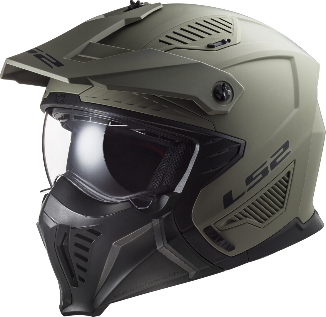 LS2 OF606 Kask próbny Drifter Świetny wybór na rejs lub po prostu rejs po ulicach miasta. Zdejmowana osłona podbródka oraz regulowana i zdejmowana tarcza. Wykonane z materiału KPA dla większej lekkości i bezpieczeństwa. Możliwość przełączenia z jasnego na ciemny daszek. Funkcje: Wzmocniony pasek podbródkowy Zdejmowany podbródek Odpinany daszek kasku Odporny na promieniowanie UV, odporny na zarysowania i chowany daszek Wyjmowana, nadająca się do prania i oddychająca wyściółka wewnętrzna Specyfikacje: standardowa: ECE 22.06 Zamknięcie: Mikrometryczne zamknięcie zapadkowe Materiał: KPA (kinetyczny stop polimerów) Waga: 1300g ± 50g Treść: 1x Kask próbny LS2 OF606 Drifter 1x torba na kask 1x przyciemniany daszek 1x naklejka odblaskowa 1x osłony otworów na (daszek kasku)
