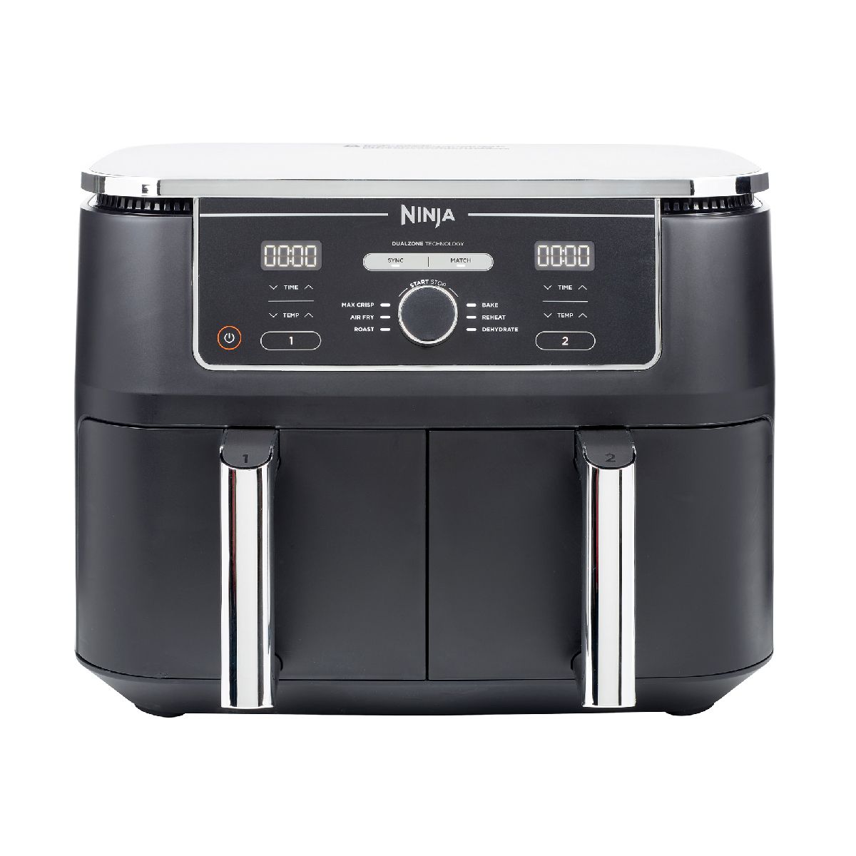 Take mealtimes to the MAX with the large capacity air fryer that cooks 2 foods, 2 ways, and finishes at the same time. SYNC function Cook two different foods using different times, temperatures and programs both are ready to serve at the same time! Want to Bake in one drawer and Air Fry in the other? No problem! Different cooking times for roast chicken and crispy chips? Both zones finish cooking at the same time, so you can enjoy freshly-cooked mains and sides together no need to use different appliances or let your side go cold while your main finishes cooking! MATCH function Double your serving size, with the same cooking program and time across both drawers. Just cooking for yourself? You can cook in a single drawer. Cook up to 25% more Extra-large capacity Each 4.75L drawer can fit a 2kg chicken or up to 1.4kg of fries. Easily feed 8+ people or just make enough for yourself. Up to 75% faster than fan ovens*. More than an Air Fryer Get creative with 6 customisable cooking functions. Air Fry guilt-free fried favourites using little to no oil up to 75% less fat than traditional frying methods Ninja guarantee: For your peace of mind, Ninja offers a free 2-year guarantee upon registration (UK & ROI only).