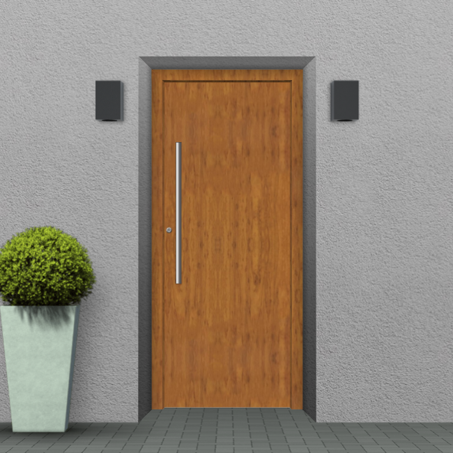 Haustür aus stabilem, wetterfestem Aluminium mit Holz-Dekor. Das Eiche-Dekor lässt Ihre Aluminium-Tür in Holzoptik erscheinen und ist nebenbei noch besonders pflegeleicht. Individuell konfigurierbar.