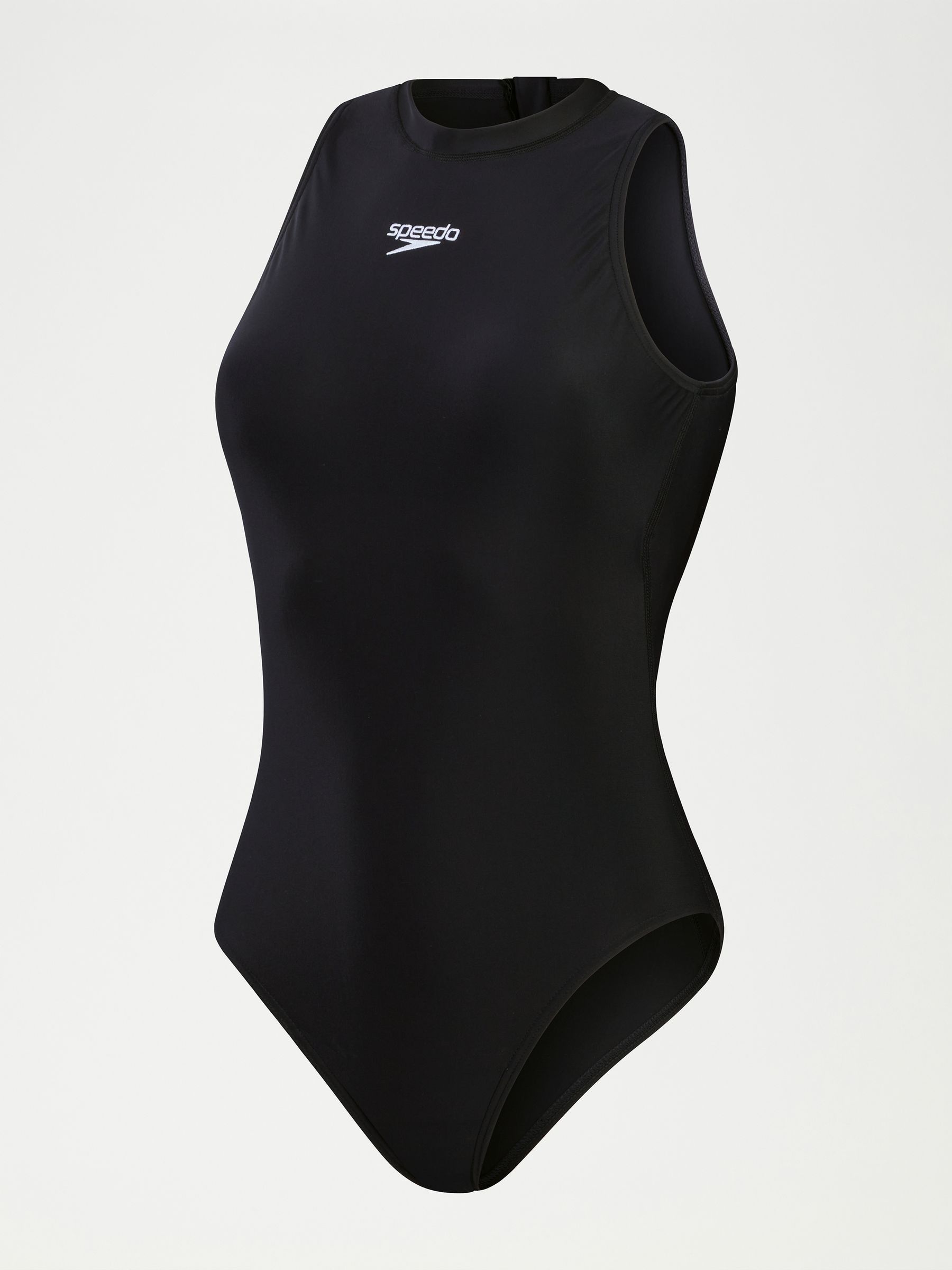 We've given our classic Hydrasuit a style update with standout white branding. Retaining its iconic silhouette with a high neck and zip-up back for full coverage, it's perfect for fitness and training sessions and includes a high cut leg for total flexibility during your workout. A bust shelf liner provides light support so you can focus on your swim. Ideal for regular pool sessions, our EnduraFlex fabric offers higher chlorine resistance than standard swimwear fabrics and fits like new for long