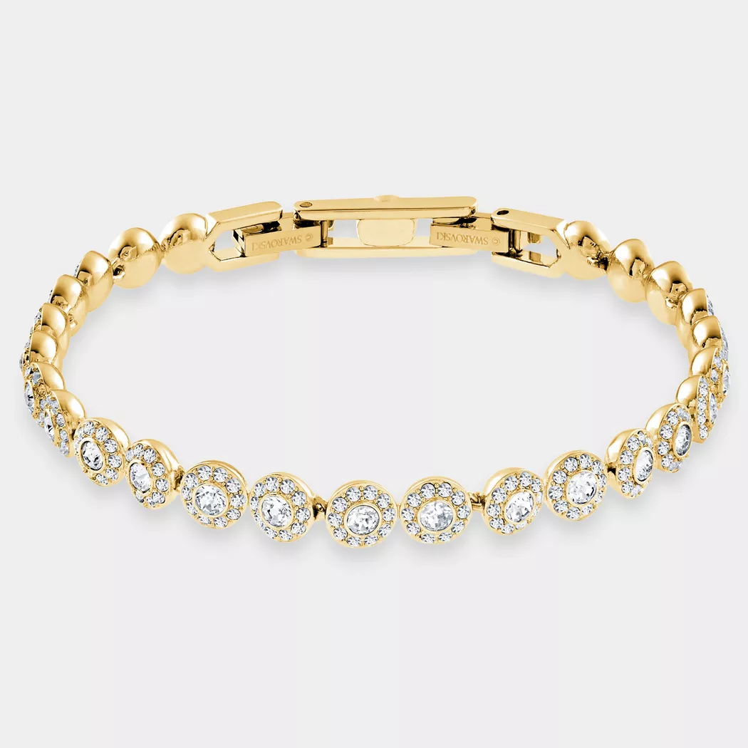 Eine glänzende Sache: Dieses herrliche Glieder-Armband von Swarovski bezaubert mit zartem Design, welches sich äusserst elegant um Ihr Handgelenk schmiegt. - Modellname: Angelic - Marketingfarbe: Goldfarben - Produktgröße: M - Marke: Swarovski